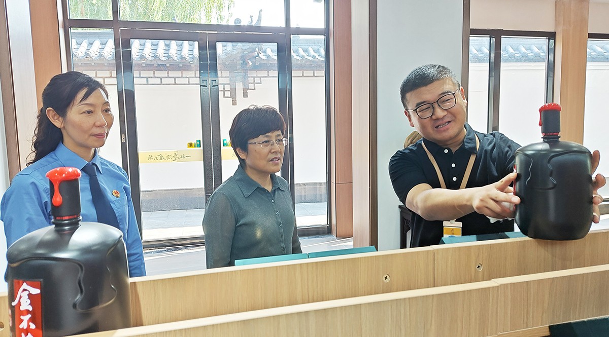 刘继英一行在金不换集团党委书记、总裁支涛的陪同下,实地查看了金不换白酒储藏、销售、生产、文化展示基地。听取企业生产经营情况和发展规划介绍。刘继英检察长对金不换多年来坚持守法诚信经营,创造良好生产经营环境,取得高质量发展给予高度赞扬。